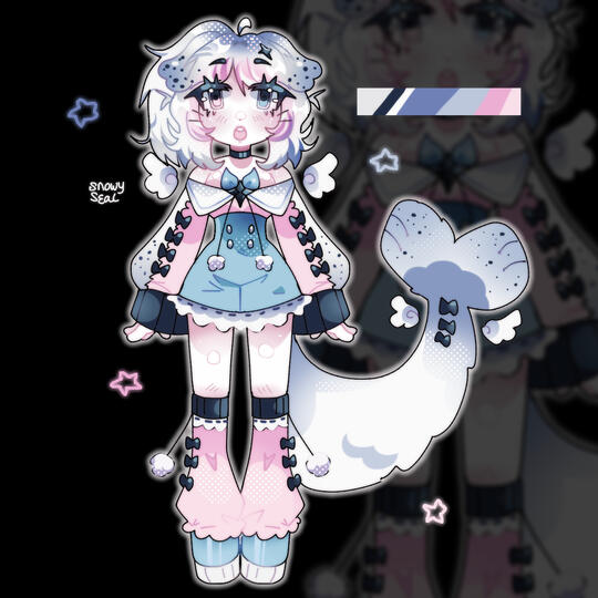 Briar is a celestial seal born during a rare event that happened 210 years ago called the Floralis Astra (floor-ehs Ass-tr-ah). Where the Southern lights turned a pastel pink and blue. When Floralis Astra was happening a magical flower bloomed in the snow of the aurora's. Briar then bloomed from the magical flower. After a while they started learning how to change into their humanoid form, while they still have an animal form, they don't care to leave the humanoid form.After a bit of living in Antarctica they found a cove where everyone's dreams turn into snowflakes, they call Velaris Cove (Veil-arr-ehs kowv). They took a Floralis Astra with them to the cove and started collecting dreams, cataloging them, and most of all protecting them. Not only are they protecting dreams but their presence is also encouraging the flower to bloom, causing it to infuse beautiful colors into the sky.While Briar doesn't necessarily like it, they tend to eat nightmares. A lot of the time nightmares will disguise themselves as dreams and try to sneak its way into Velaris Cove. They sometimes go into your dreams in order to save you from them. Once they went into a little kid's dream, while inside the dream they met a baby seal made of marshmallows. During the entirety of the dream they kept trying to protect the seal and get him to safety, eventually they realized the baby seal would not leave their side. Later they were about to leave the dream and the marshmallow seal escape with Briar and before Briar could notice their new companion they couldn't go back. Briar then adopted him, naming him Mallow. He now helps Briar protect dreams.When you're around Briar you tend to notice that they're always in a state of chronic tiredness because they physically can't sleep. They can "nap" with you meaning that they can lay with you and protect you easier but have to live vicariously through you when it comes to sleep.Since they've been alone for most of their life whenever they see someone they tend to get an instant crush on the person. If they get with you/are near you watch out as they WILL become your yandere. Don't be deceived by their cuteness as they may kill YOU or kill FOR you.